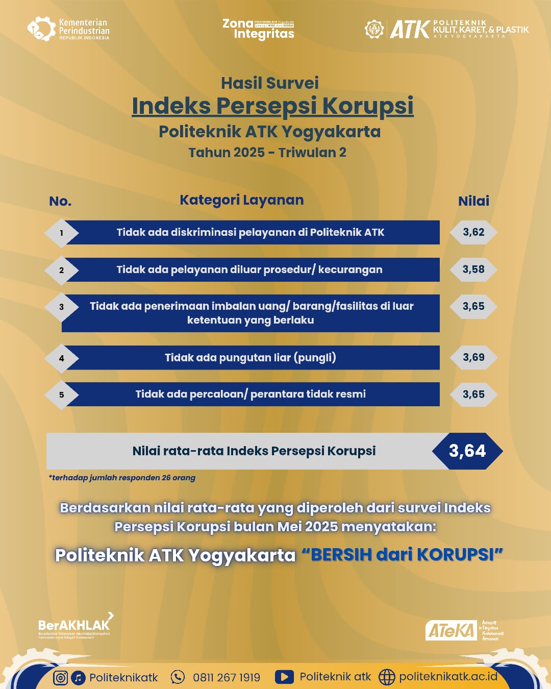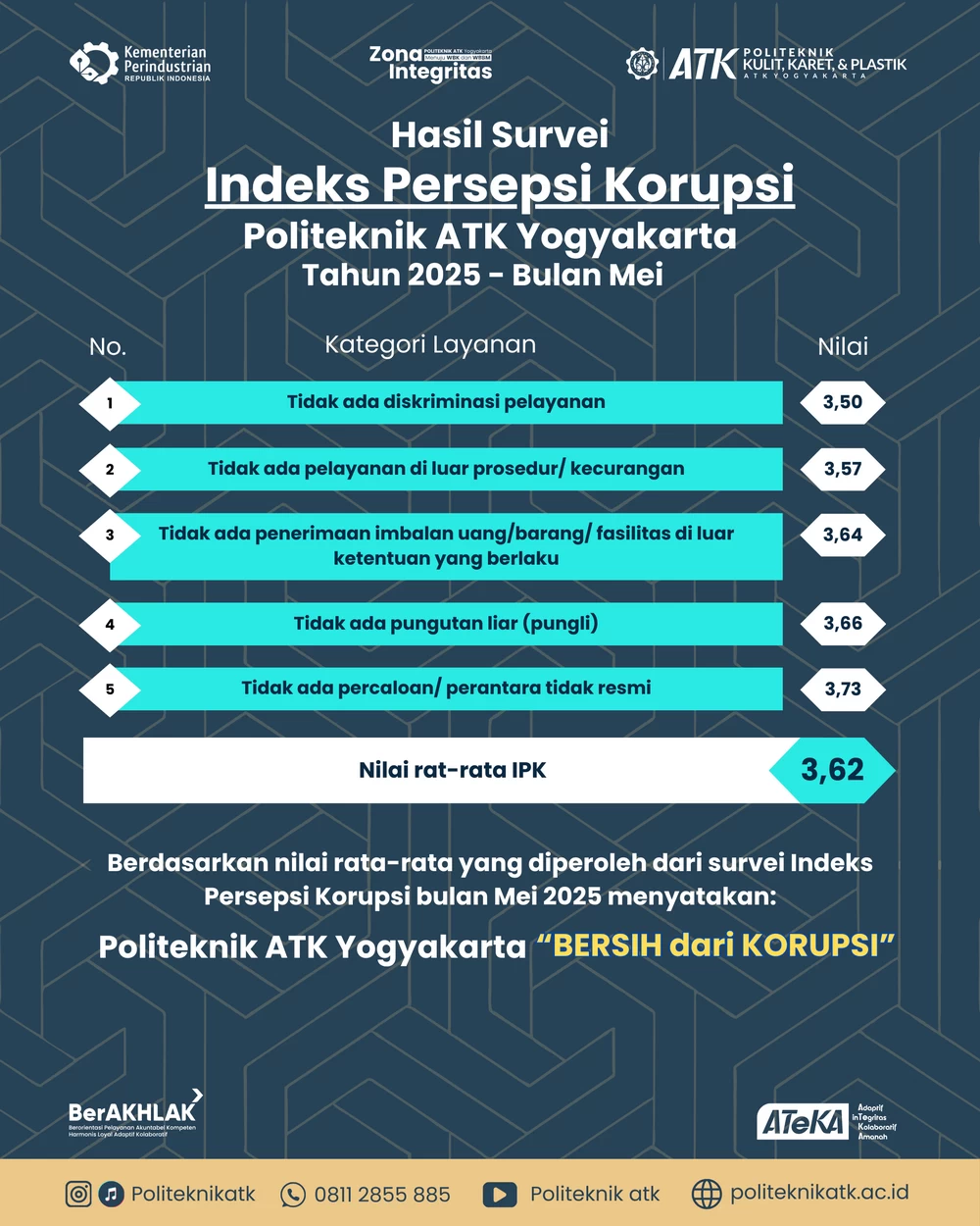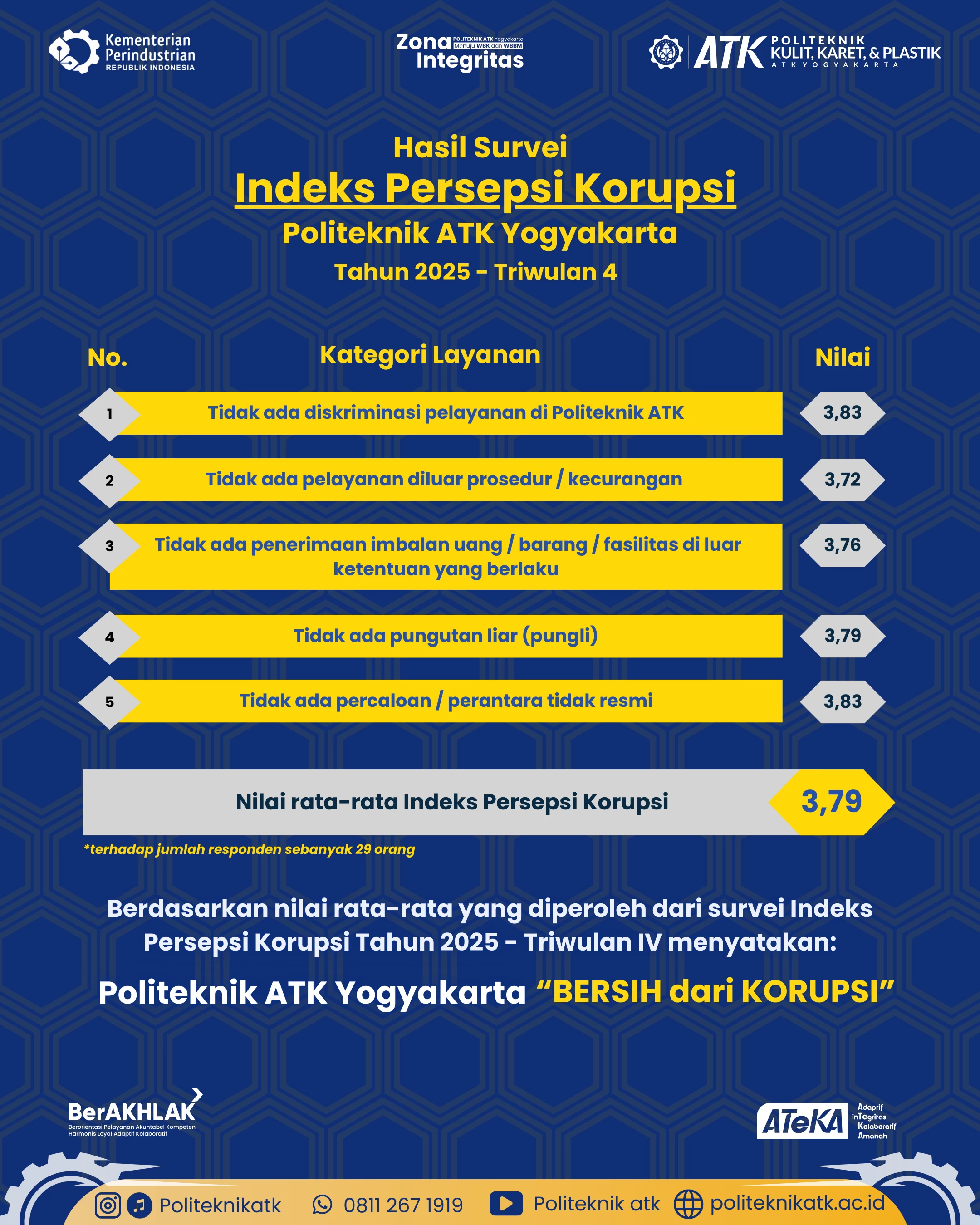 Hasil Indeks Persepsi Korupsi Politeknik ATK Yogyakarta