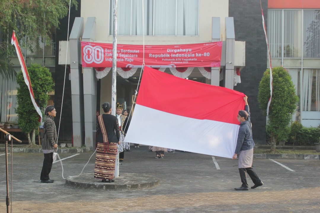 “Sebagai lembaga pendidikan vokasi, kita berdiri tegak di tengah semangat kemerdekaan yang ke-80 ini. Melalui tema ‘Bersatu Berdaulat, Rakyat Sejahtera, Indonesia Maju’, marilah kita memperkuat solidaritas antar sivitas akademika, menjaga martabat bangsa, serta mendorong kesejahteraan dan inovasi. Semoga Politeknik ATK Yogyakarta mampu berkontribusi nyata dalam membentuk generasi maju, mandiri, dan siap bersaing di era kekinian,” ungkapnya.